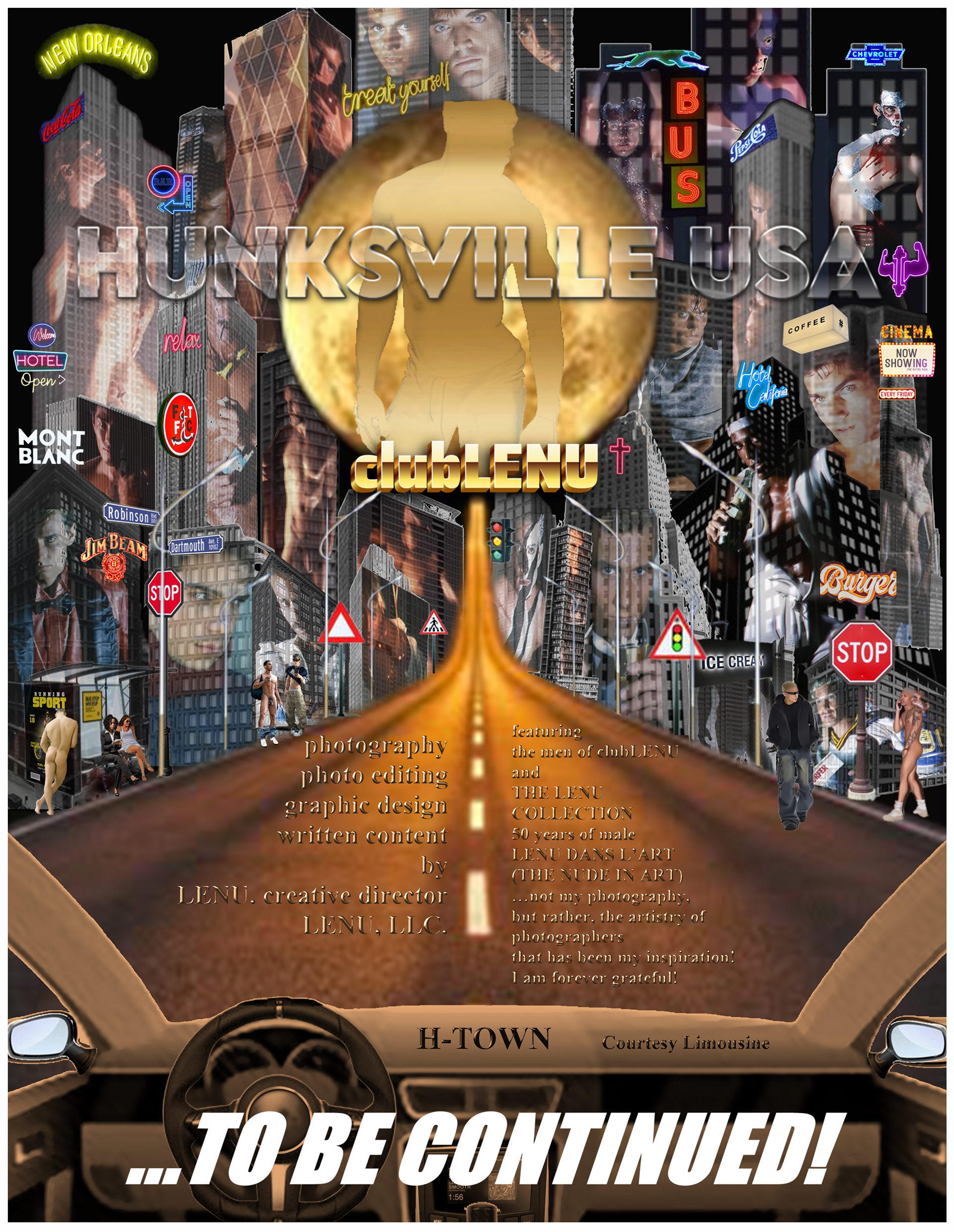 clubLENU celebrates and the artistry of LE NU DANS L'ART (The Nude in Art). To showcase my artwork and the artwork of fellow artists who consider the beauty of the human form as the epitome of all things beautiful, I have created a virtual small town where clothes are optional anywhere within city limits. Artists are free to create without the fear that their nude subject(s) could be arrested for indecent exposure. To support my efforts, artists, models and their families from around the world have relocated and now, reside in this small but rapidly growing American town. An Artificially Intelligent field reporter (Betty Jones) thinks this is an amazing story and shocks the Anchor, network executives, Censors and the general public by airing her report from the men's locker room of the clubLENU health club. Images of completely naked men were broadcast to the Nightly Evening News audience without any warnings. The News Anchor was so taken aback she used an expletive on air! Betty had never mentioned her appreciation of male nude art. And she had not told anybody connected to her network about her story. As the property of her network she is programed with mundane, frivolous stories as fillers to accommodate more interesting reports by human reporters. However, unlike most Artificial Intelligence units Betty has the ability to think independently and program herself to perform any task well. Her biggest mistake was not knowing that in America, many notoriously did not share her appreciation of the nude form in general and the male nude form especially. Her appreciation of the male form in art grew out of her becoming fascinated with the differences between hers and the male AI prototypes. She fell in love with the intense beauty of the nude male physique in art. Her favorite artist is LENU. She read his book, LESSONS FROM THE MASTERS, and collected copies of his fine art male nudes, magazine covers and nude layouts. The men in his artwork seemed to be relating directly with her. And the shadows in his compositions added drama and enhanced the beauty of the male physique. When she read about his ambitious attempt to turn a small religious town on the edge of a modern-day Garden of Eden into a clothing-optional artists’ community, she had to cover the story and write the report. The story is told with my commentary and features artistic collages using my artwork and the artwork of incredible artists who share my love of LE NU DANS L’ART. The work is humorous, provocative, intimidating and features a lot of gregarious male and female nudity. This is not a pornographic website! However, viewer discretion is advised. -LENU