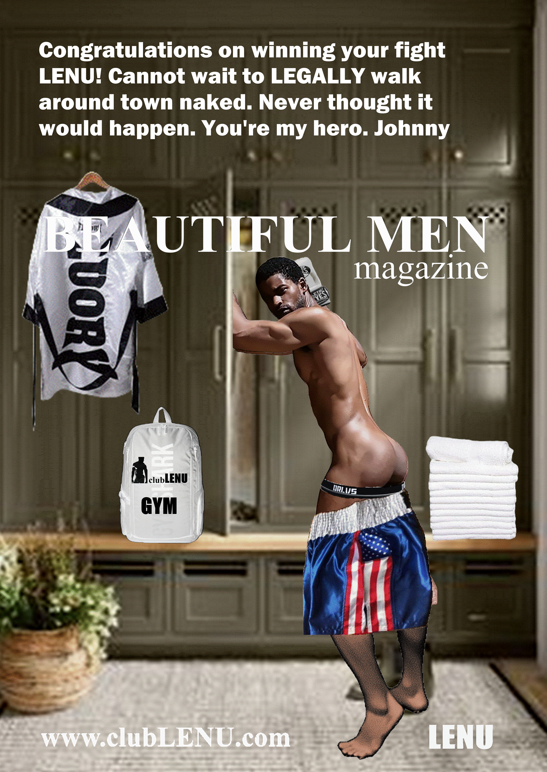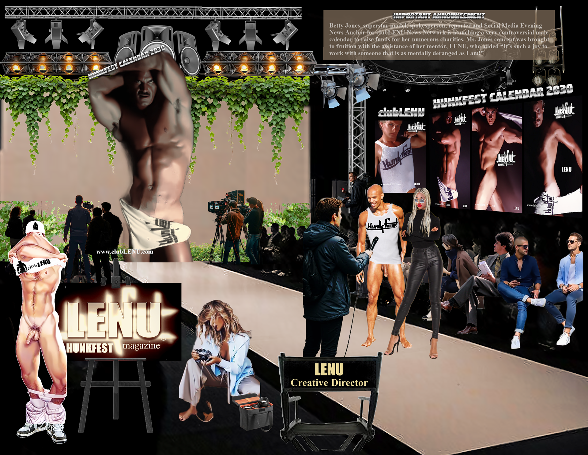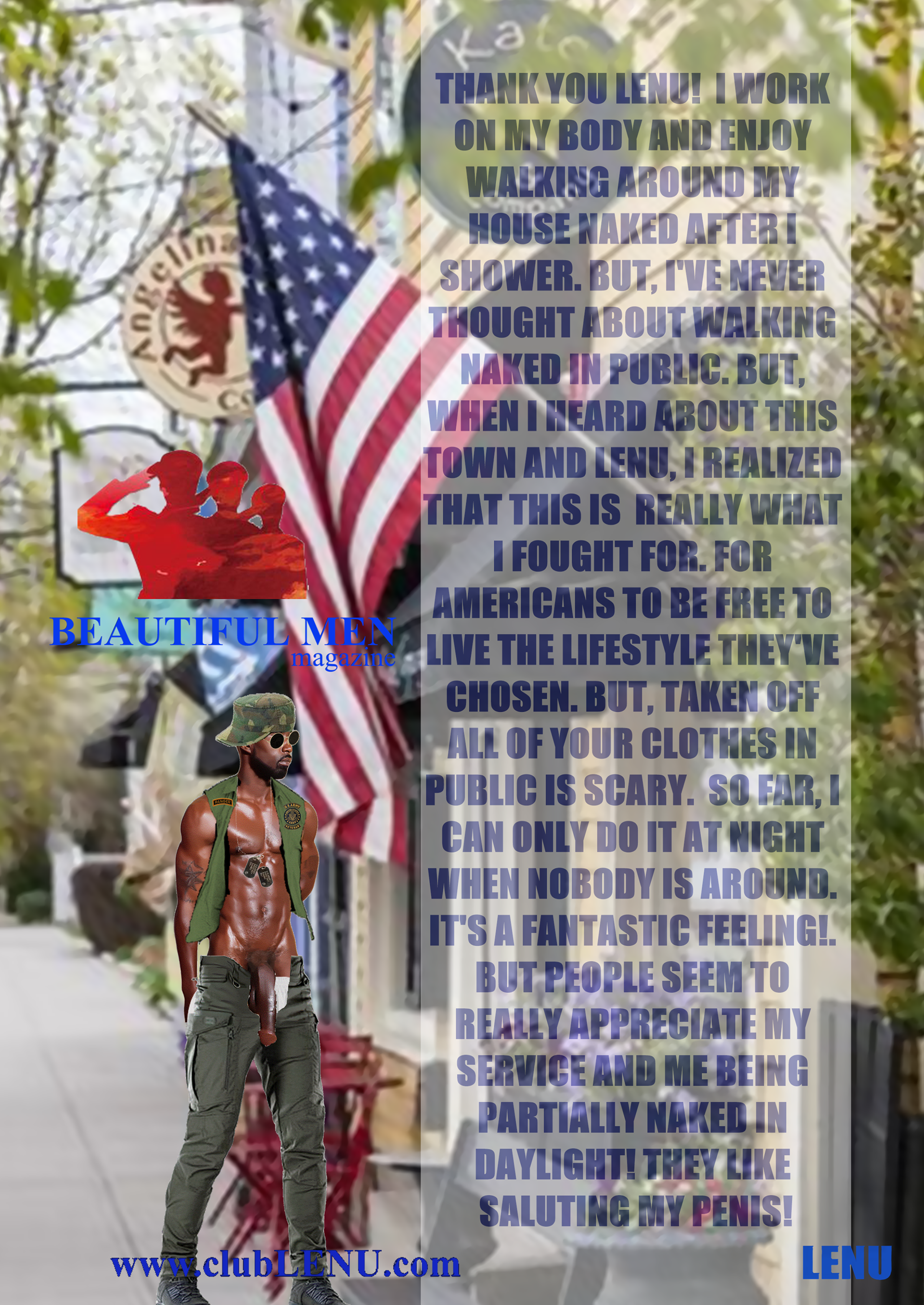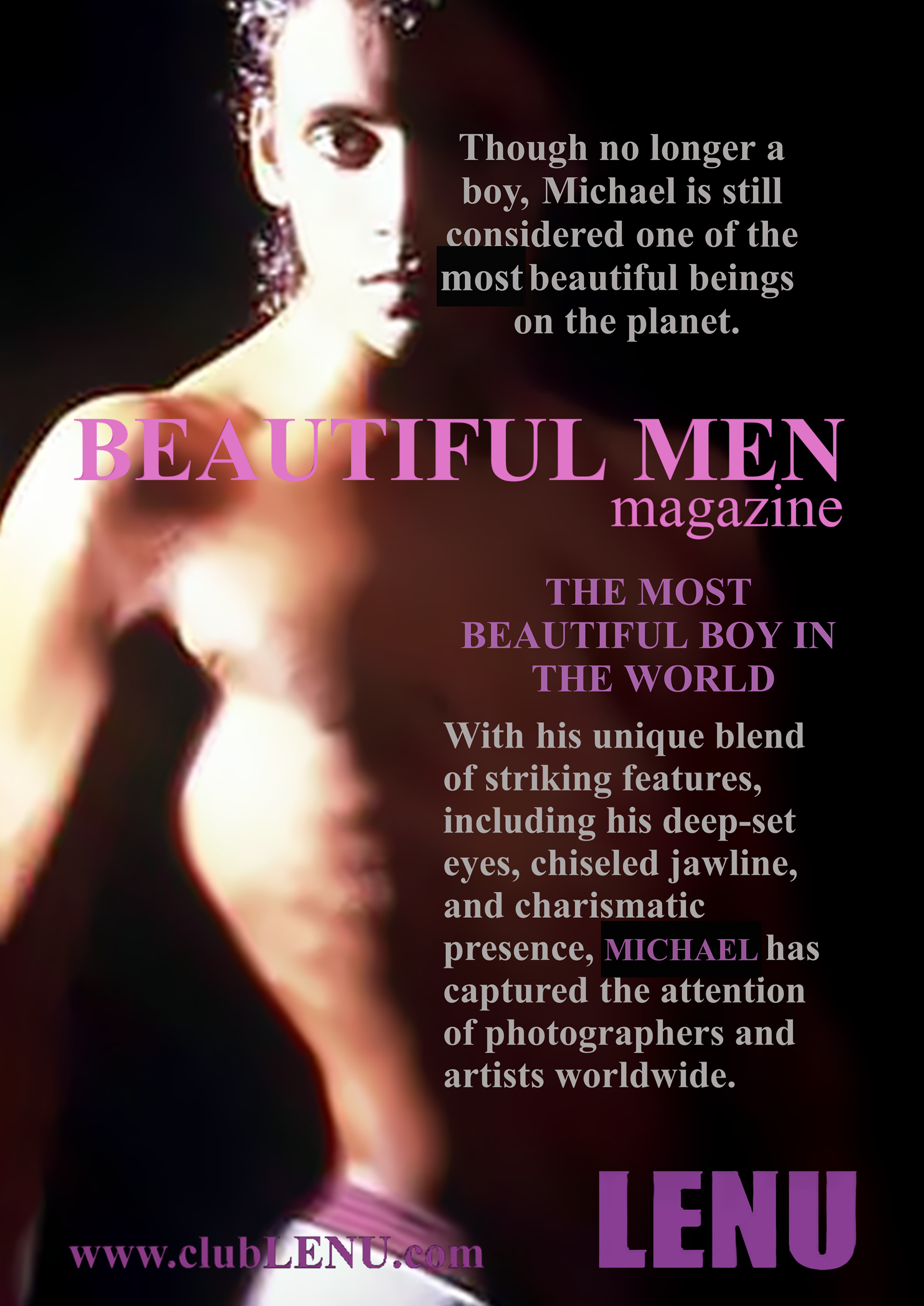 It was in the ICU that Michael saw a particular series of images featuring men chosen for the first clubLENU project, “HUNKFEST”! He was blown away by how beautiful the men were and my camera loved them. Which has always been my impression about the artwork. The men in clubLENU were exquisite and as kind as they were good looking. They followed my instructions perfectly. And the nudity was only suggestive. We were very careful not to show any penises especially. I designed the project as a provocative art exhibition to appeal to mainstream women. I advertised in mainstream publications and sent press releases to top talent agencies, top modeling agencies, top casting and production companies. I also attempted to show more diversify by using more African American and Hispanic models in prominent positions in my advertisements. I can describe in detail the totally unexpected personal nightmare that followed. But let us just say…whatever could possibly go wrong…DID! What confused me most was total, absolute alienation by the mainstream and a total, absolute embrace by the gay community! My dilemma was that to my knowledge none of the men featured in the project were gay. Some may very well have been. But over the year it took to photograph this project there was never a conversation about any gay subjects. Some brought their wives, fiancés, girlfriends to view the results of our private photo sessions. And never did we have a conversation about their semi-nude image in layouts or on the cover of gay publications. And then publicity photos that accompanied press releases were used as cover photos by gay publications. There were angry calls from models that I considered to be friends, their wives, girlfriends, friends, parents, siblings and cousins! Financial backers wanted their money back immediately. And then came the death threats and property damage. She was so afraid, my secretary quit and flew home to her parents! And from this point? Oh, it gets far worse! But we are going stop here and focus on the incredible images created by these beautiful men.