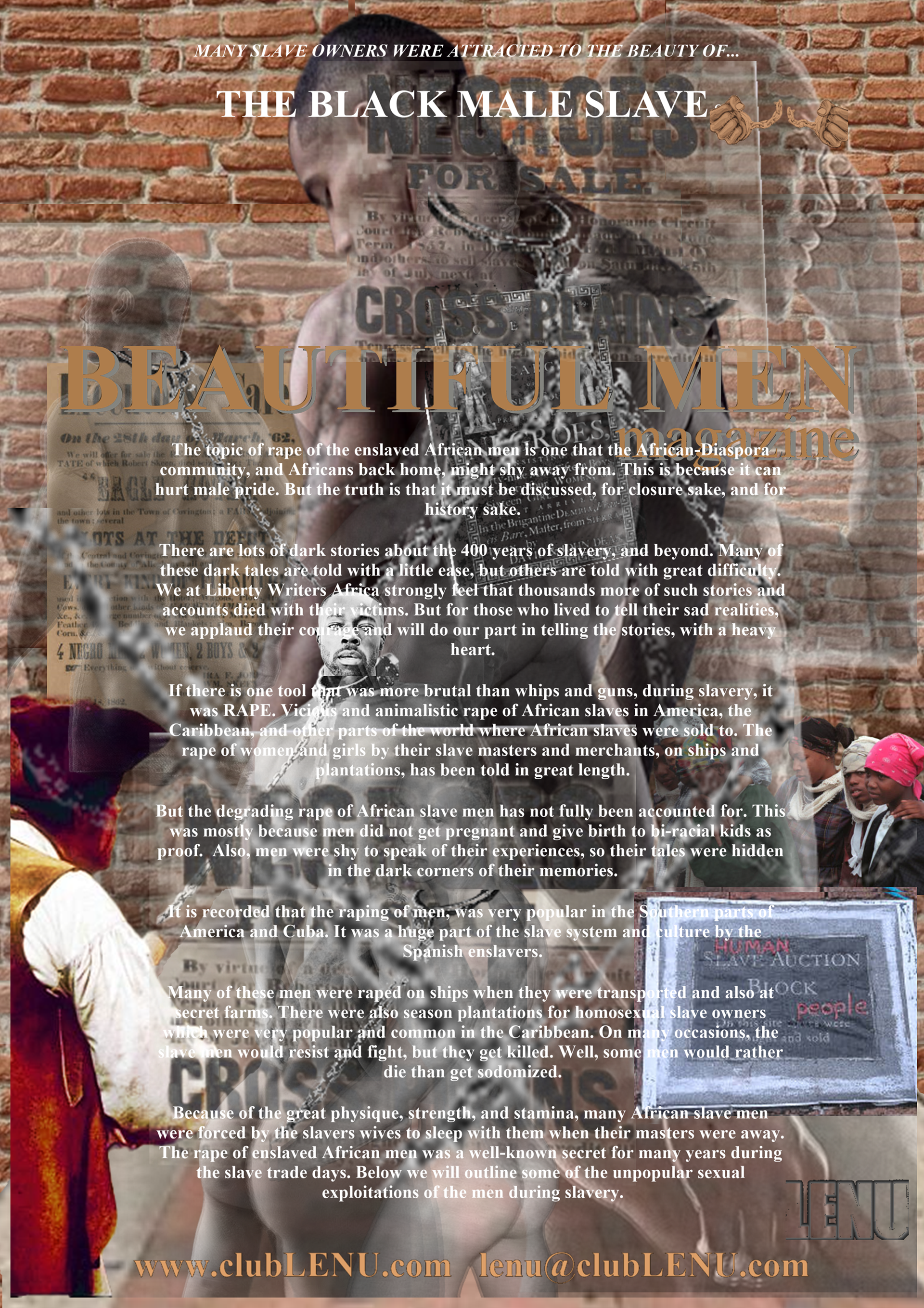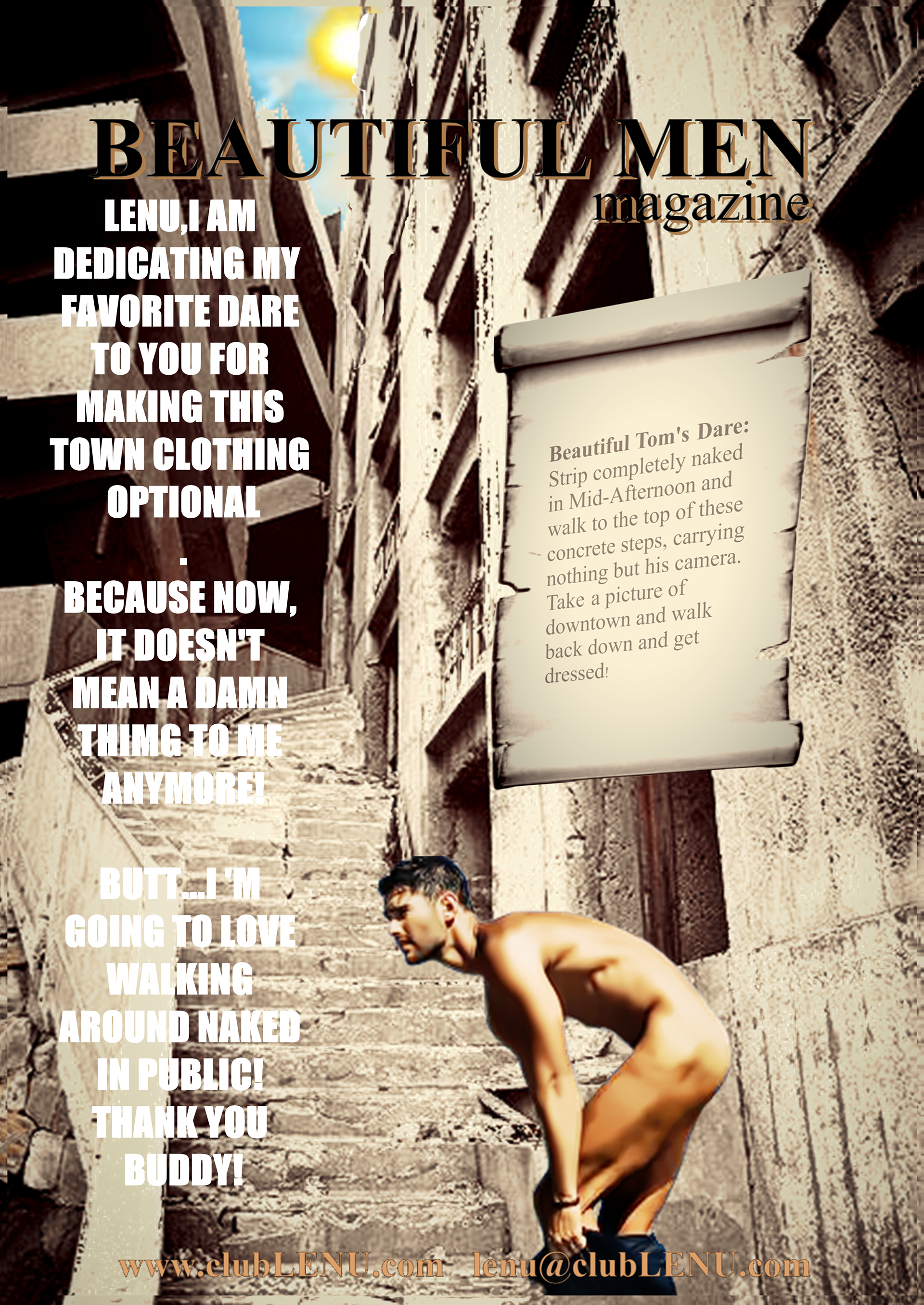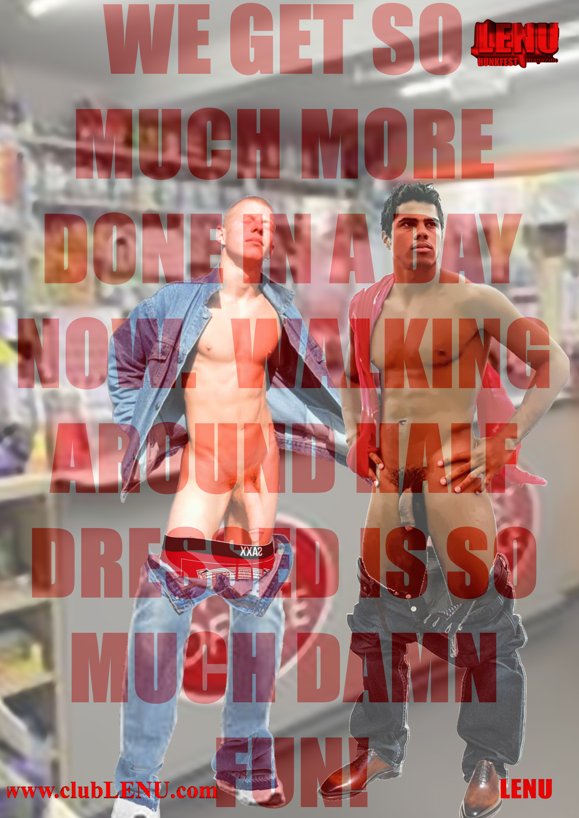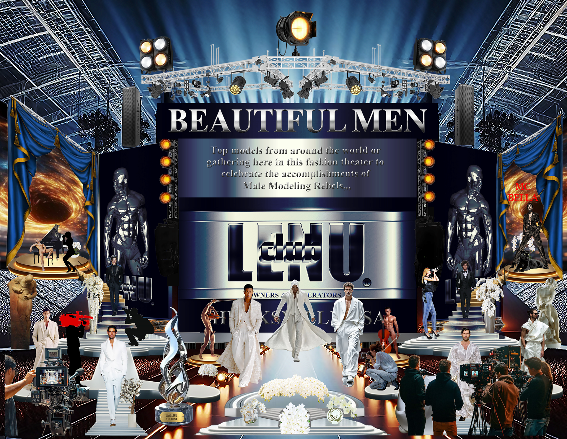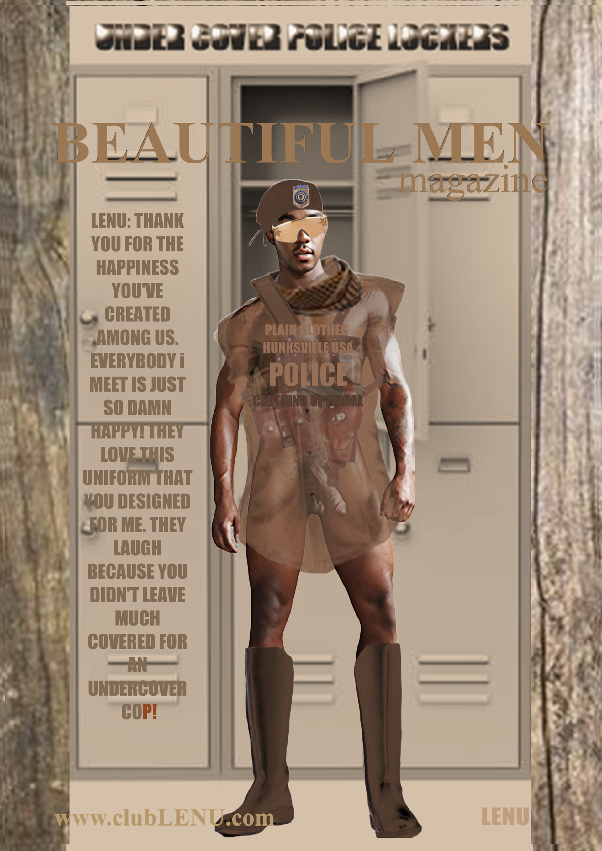 It was in the ICU that Michael saw a particular series of images featuring men chosen for the first clubLENU project, “HUNKFEST”! He was blown away by how beautiful the men were and my camera loved them. Which has always been my impression about the artwork. The men in clubLENU were exquisite and as kind as they were good looking. They followed my instructions perfectly. And the nudity was only suggestive. We were very careful not to show any penises especially. I designed the project as a provocative art exhibition to appeal to mainstream women. I advertised in mainstream publications and sent press releases to top talent agencies, top modeling agencies, top casting and production companies. I also attempted to show more diversify by using more African American and Hispanic models in prominent positions in my advertisements. I can describe in detail the totally unexpected personal nightmare that followed. But let us just say…whatever could possibly go wrong…DID! What confused me most was total, absolute alienation by the mainstream and a total, absolute embrace by the gay community! My dilemma was that to my knowledge none of the men featured in the project were gay. Some may very well have been. But over the year it took to photograph this project there was never a conversation about any gay subjects. Some brought their wives, fiancés, girlfriends to view the results of our private photo sessions. And never did we have a conversation about their semi-nude image in layouts or on the cover of gay publications. And then publicity photos that accompanied press releases were used as cover photos by gay publications. There were angry calls from models that I considered to be friends, their wives, girlfriends, friends, parents, siblings and cousins! Financial backers wanted their money back immediately. And then came the death threats and property damage. She was so afraid, my secretary quit and flew home to her parents! And from this point? Oh, it gets far worse! But we are going stop here and focus on the incredible images created by these beautiful men.