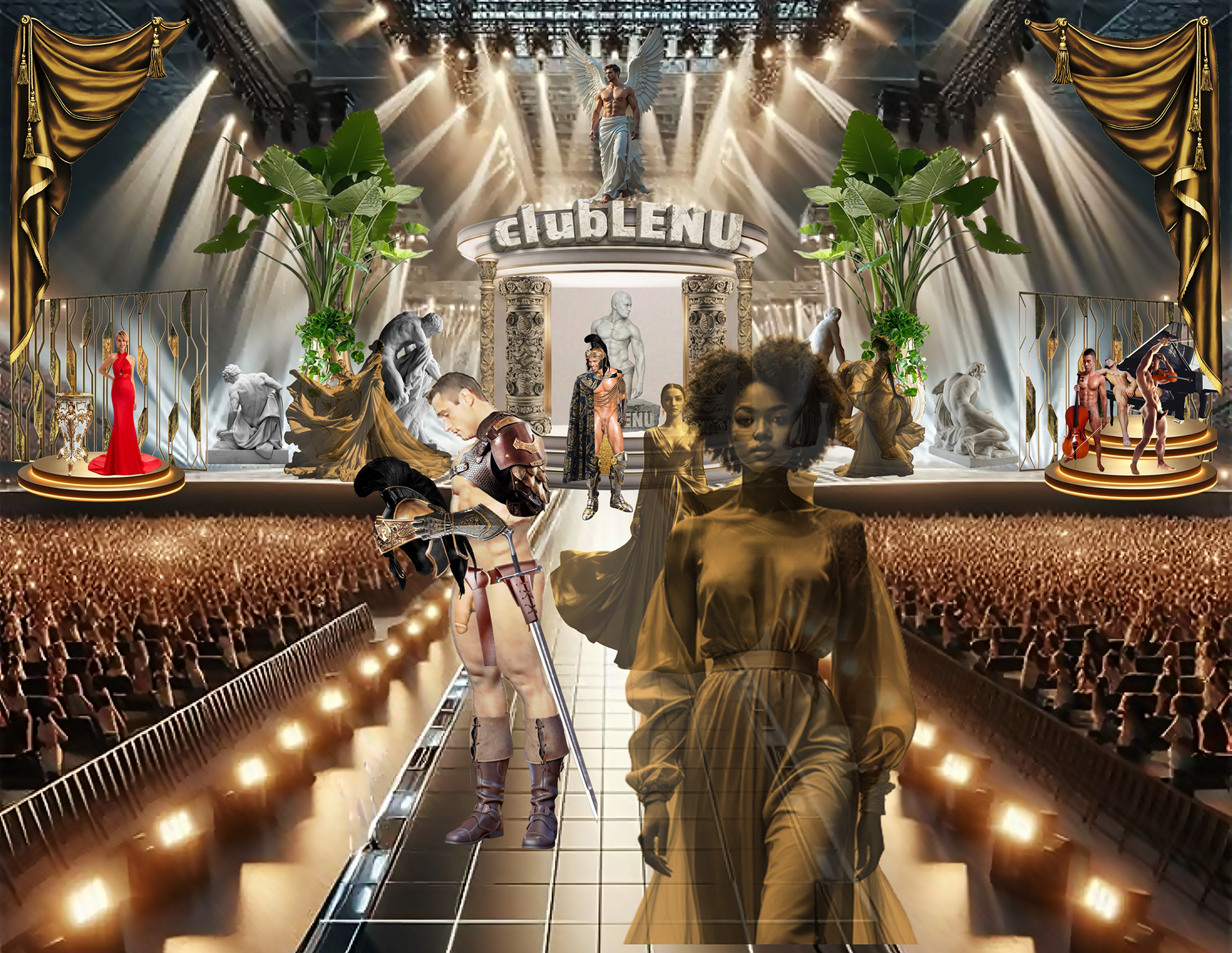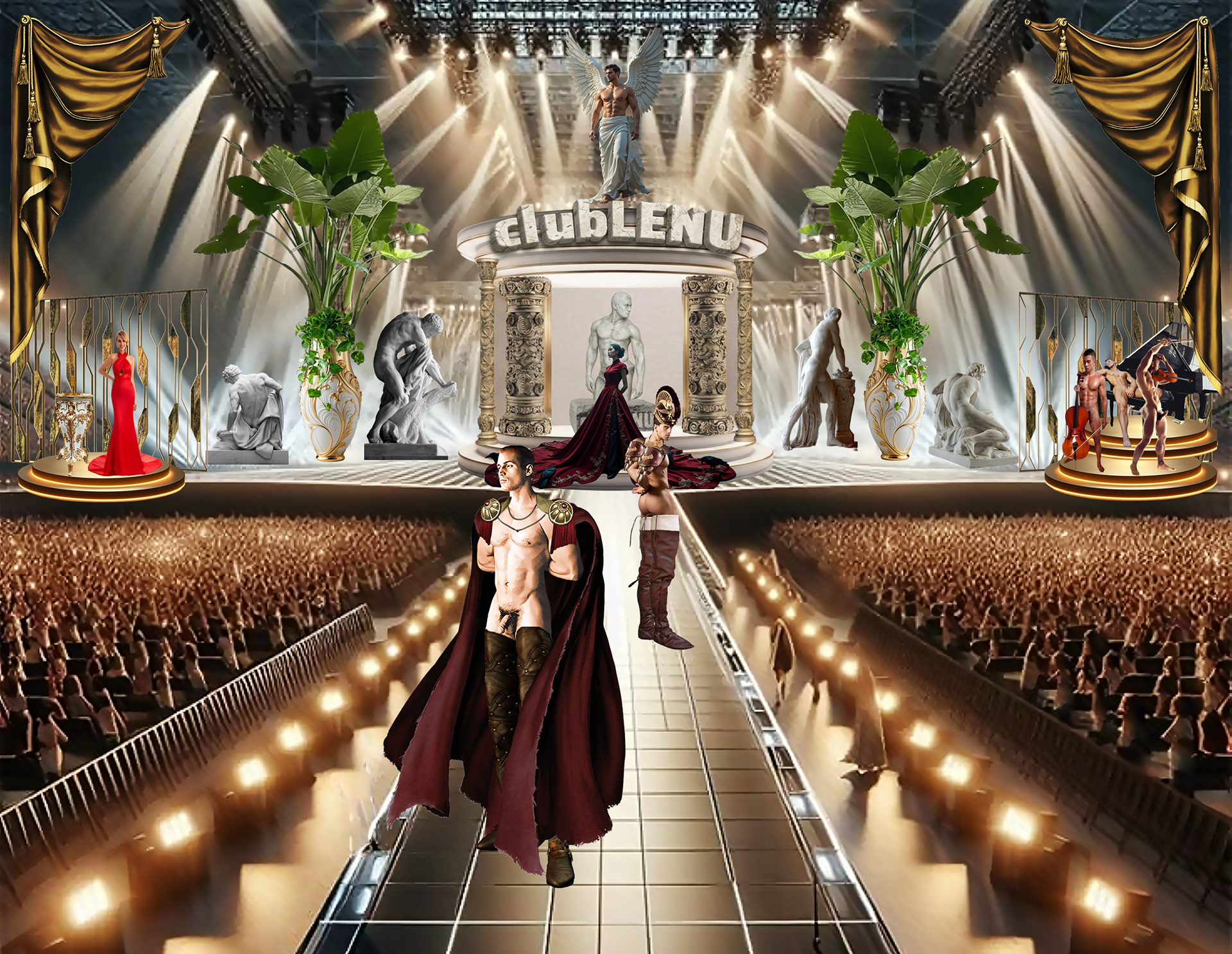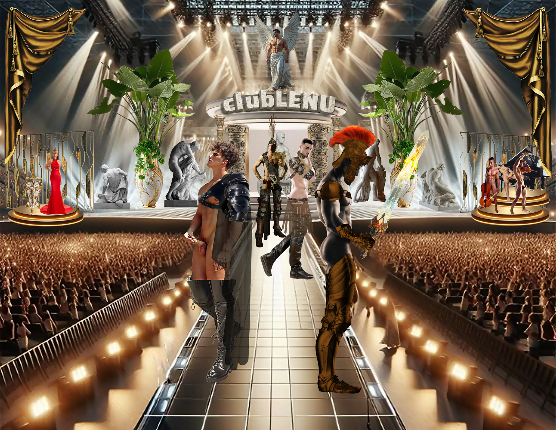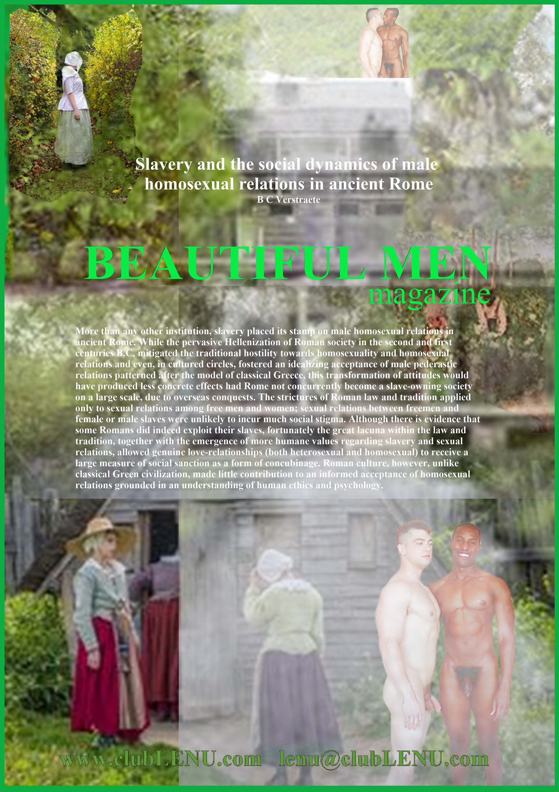 It was in the ICU that Michael saw a particular series of images featuring men chosen for the first clubLENU project, “HUNKFEST”! He was blown away by how beautiful the men were and my camera loved them. Which has always been my impression about the artwork. The men in clubLENU were exquisite and as kind as they were good looking. They followed my instructions perfectly. And the nudity was only suggestive. We were very careful not to show any penises especially. I designed the project as a provocative art exhibition to appeal to mainstream women. I advertised in mainstream publications and sent press releases to top talent agencies, top modeling agencies, top casting and production companies. I also attempted to show more diversify by using more African American and Hispanic models in prominent positions in my advertisements. I can describe in detail the totally unexpected personal nightmare that followed. But let us just say…whatever could possibly go wrong…DID! What confused me most was total, absolute alienation by the mainstream and a total, absolute embrace by the gay community! My dilemma was that to my knowledge none of the men featured in the project were gay. Some may very well have been. But over the year it took to photograph this project there was never a conversation about any gay subjects. Some brought their wives, fiancés, girlfriends to view the results of our private photo sessions. And never did we have a conversation about their semi-nude image in layouts or on the cover of gay publications. And then publicity photos that accompanied press releases were used as cover photos by gay publications. There were angry calls from models that I considered to be friends, their wives, girlfriends, friends, parents, siblings and cousins! Financial backers wanted their money back immediately. And then came the death threats and property damage. She was so afraid, my secretary quit and flew home to her parents! And from this point? Oh, it gets far worse! But we are going stop here and focus on the incredible images created by these beautiful men.